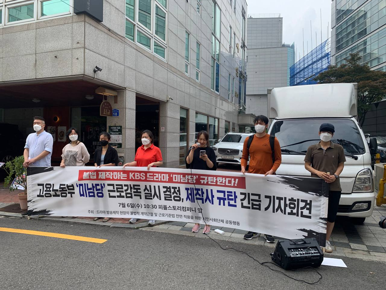 지난 6일(수) 오전, #KBS드라마 #미남당 근로감독 결정을 환영하며, 제작사 #피플스토리컴퍼니 를 규탄하는 기자회견이 있었습니다. 많은 언론에서 관심을 가져주시고 있습니다. #미남당시청거부 는 계속됩니다. 관심과 지지, 연대를 부탁드립니다!