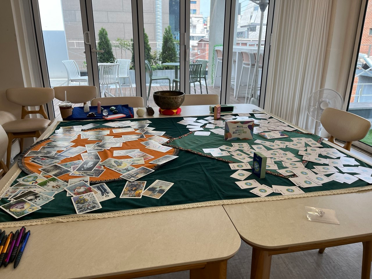 타로모임 마지막에는 싱잉볼을 치고 진동을 느끼면서 오늘 타로모임이 어땠는지 소회를 나누기도 했습니다.