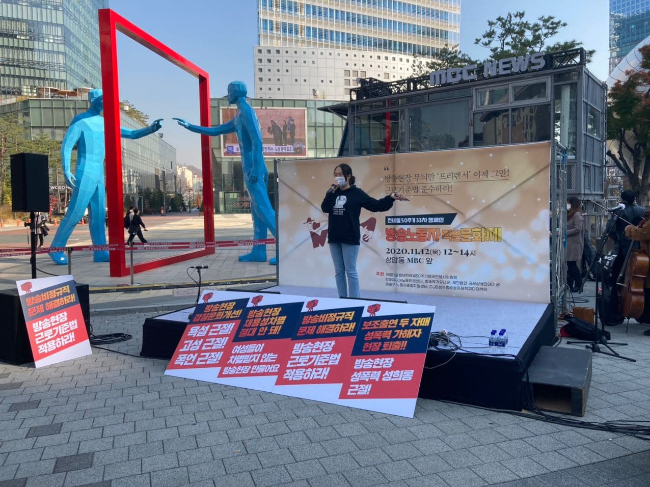 오늘 상암 MBC 앞 광장에서 전태일 열사 50주기를 맞아 열린 '전태일 50주기 33차 캠페인 : 상암동 방송노동자 작은문화제'가 12시부터 14시까지 개최되었습니다.