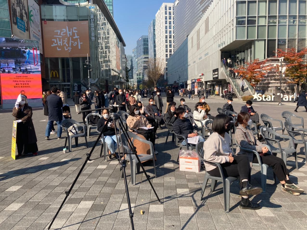 무수한 방송사와 제작사가 밀집한 마포구 상암동 DMC(디지털미디어시티)! 그 곳을 바쁘게 돌아다니는 방송 노동자분들에게 따뜻한 커피와 간식을 제공하는 것은 물론, 전태일 열사의 50주기를 맞아 2020년 현재의 노동 현실을 되새기는 의므로 제작된 <전태일신문>을 배포하였습니다.