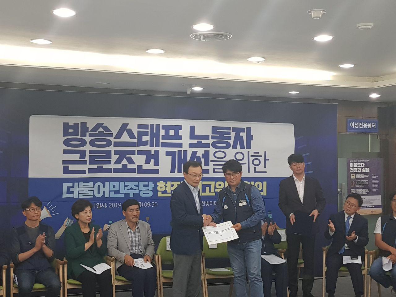 이해찬 더불어민주당 당대표와 더불어민주당 을지로위원회의 박홍근 위원장을 비롯한 당 최고위원들은 적극적으로 방송-미디어 노동 환경 개선에 나서겠다고 약속했습니다.