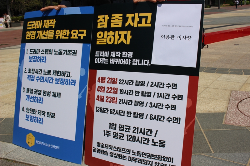 한빛센터가 받은 제보를 보면 오는 12일 첫 방송 예정인 SBS 주말 드라마 ‘시크릿 마더’ 스태프들은 하루 20시간 넘게 일했다. 9일부터 방송 예정인 MBN 수목 드라마 ‘리치맨’ 제작 현장도 노동조건이 열악하다는 제보가 들어왔다.