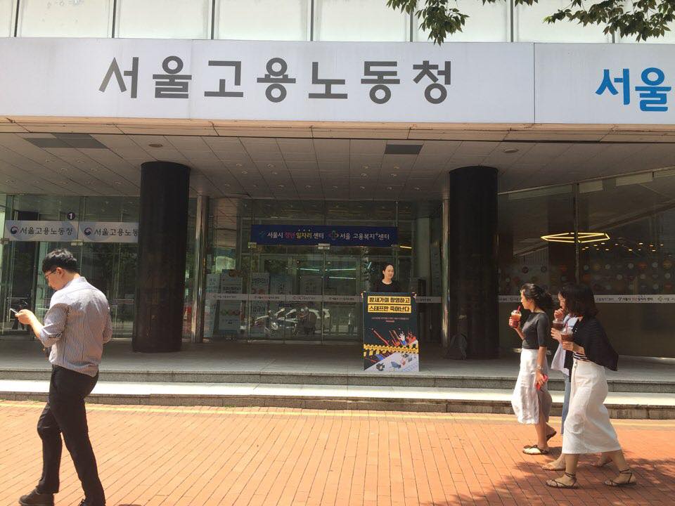 서울고용노동청 앞은 삼성전자서비스지회 기자회견, 레이테크코리아 농성 등으로 시끌벅적했습니다. 찌는 더위 속에서도 투쟁하는 노동자들의 목소리가 을지로 거리를 꽉 채웠습니다.