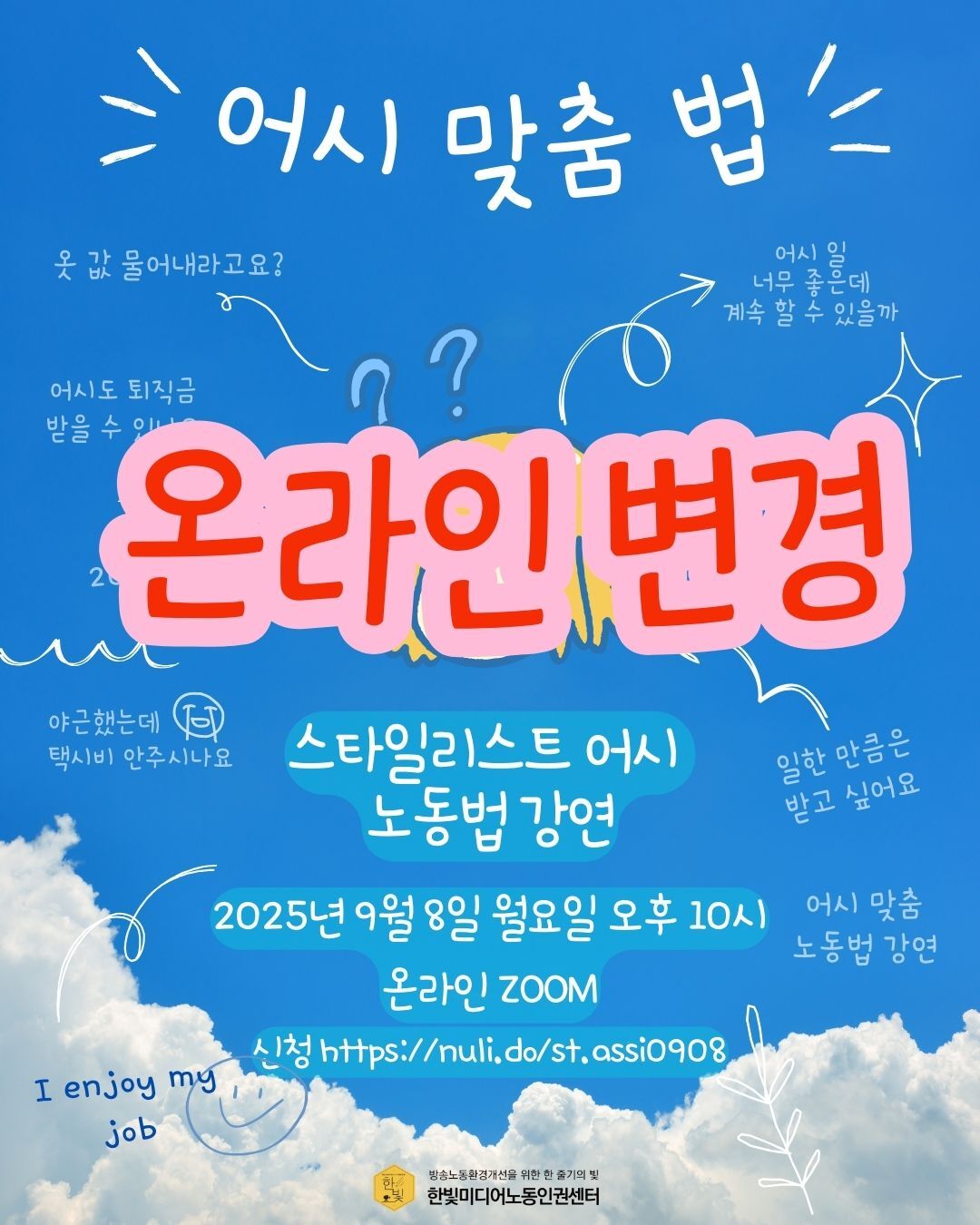 - 문의 : 한빛미디어노동인권센터 (1833-8261, hanbitcenter@gmail.com)