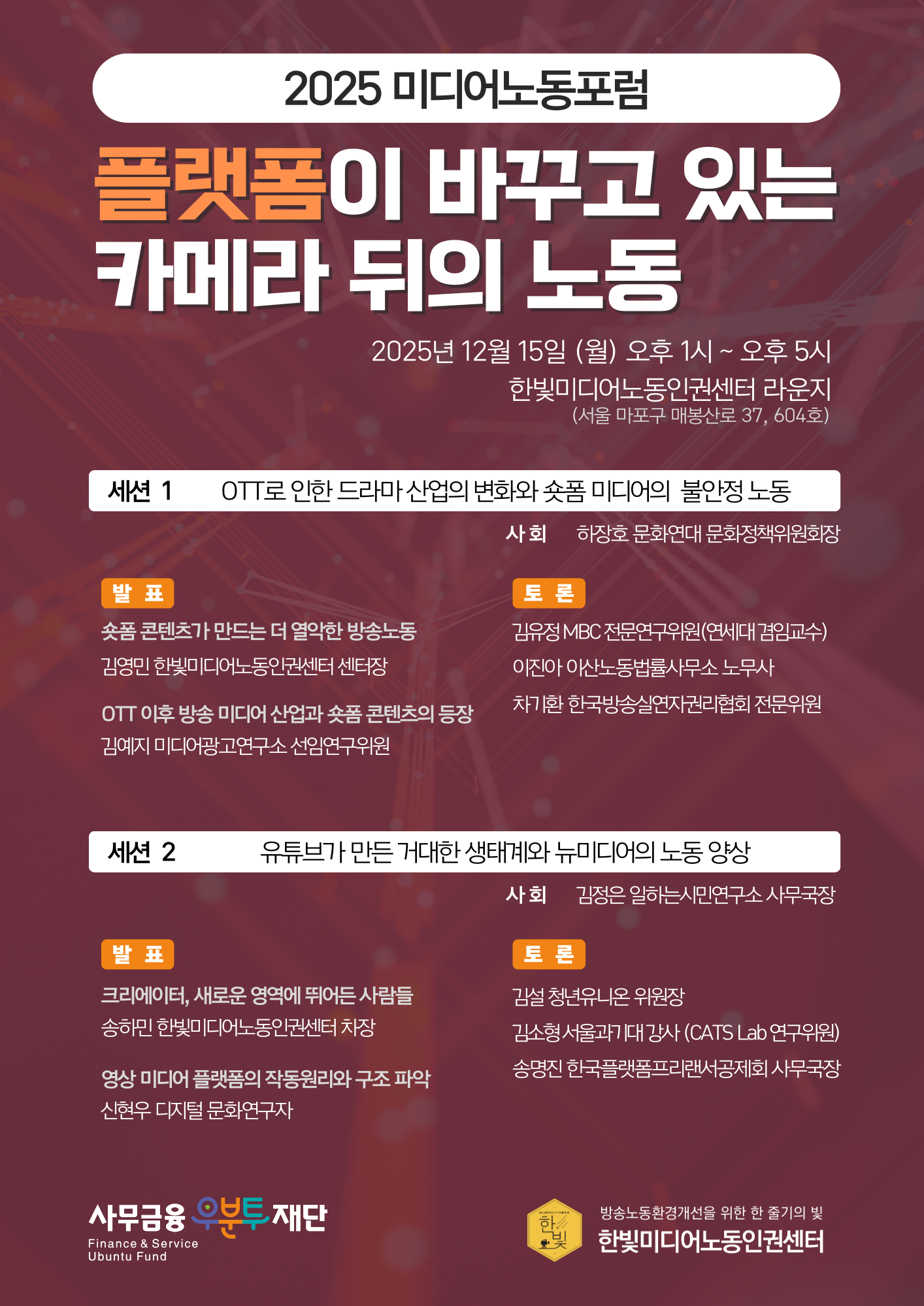 2025 미디어노동포럼 : 플랫폼이 바꾸고 있는 카메라 뒤의 노동