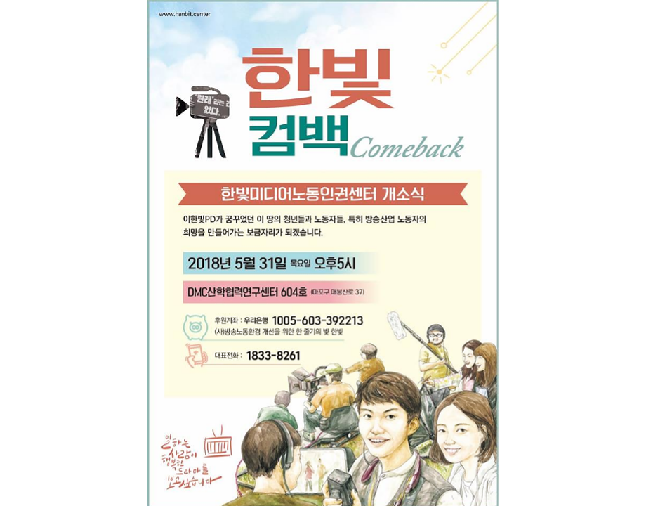후원계좌 : 우리은행 1005-603-392213 (사)방송노동환경 개선을 위한 한 줄기의 빛 한빛