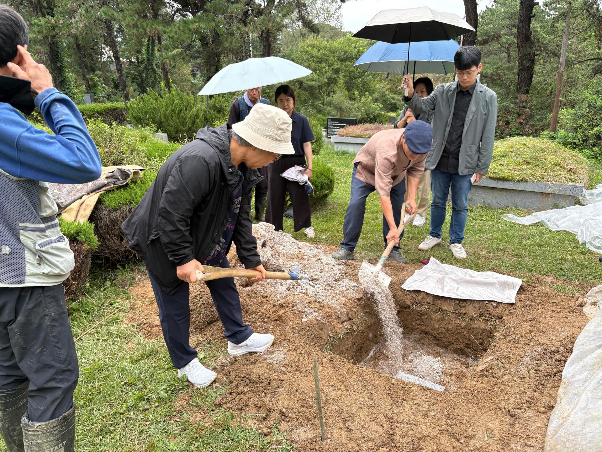 이한빛 PD를 의정부 신곡2동 성당 하늘의문에서 마석 모란공원 민족민주열사 묘역으로 이장하였습니다. 비가 약하게 조금 내리기는 했지만, 선선해진 날씨 속에서 무사히 안장할 수 있었습니다. |