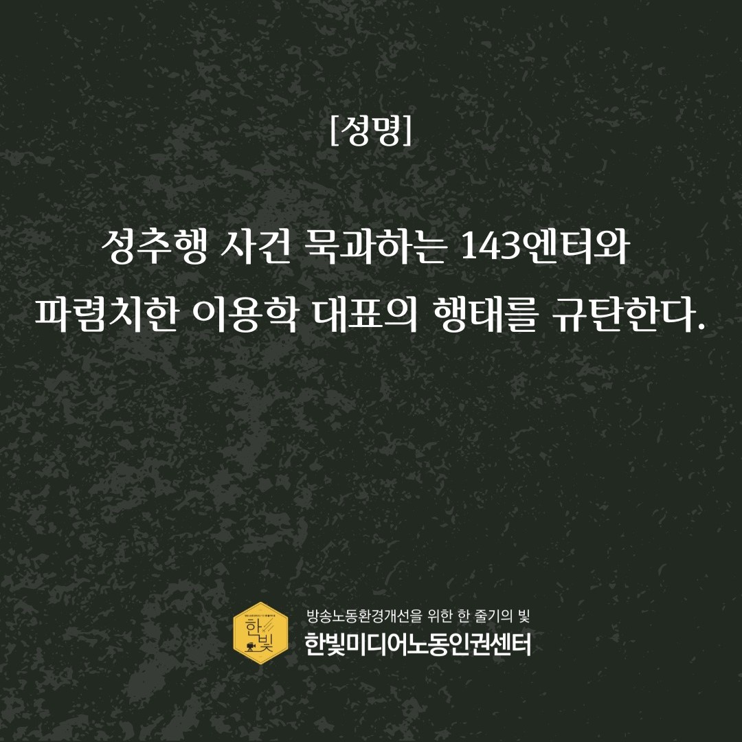 [성명] 성추행 사건 묵과하는 143엔터와 파렴치한 이용학 대표의 행태를 규탄한다.
