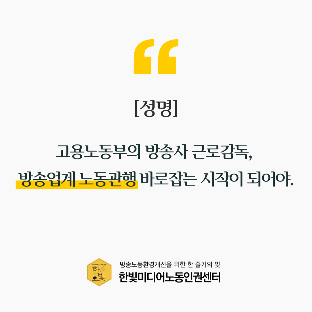 [성명] 고용노동부의 방송사 근로감독, 방송업계 노동관행 바로잡는 시작이 되어야.