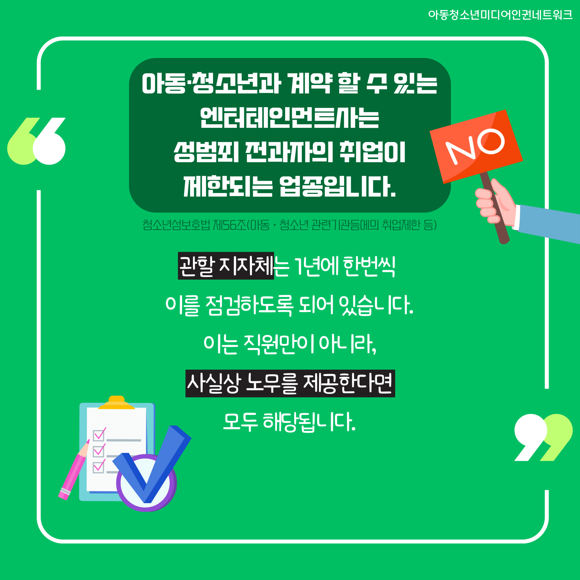 * 청소년성보호법 제56조(아동ㆍ청소년 관련기관등에의 취업제한 등)