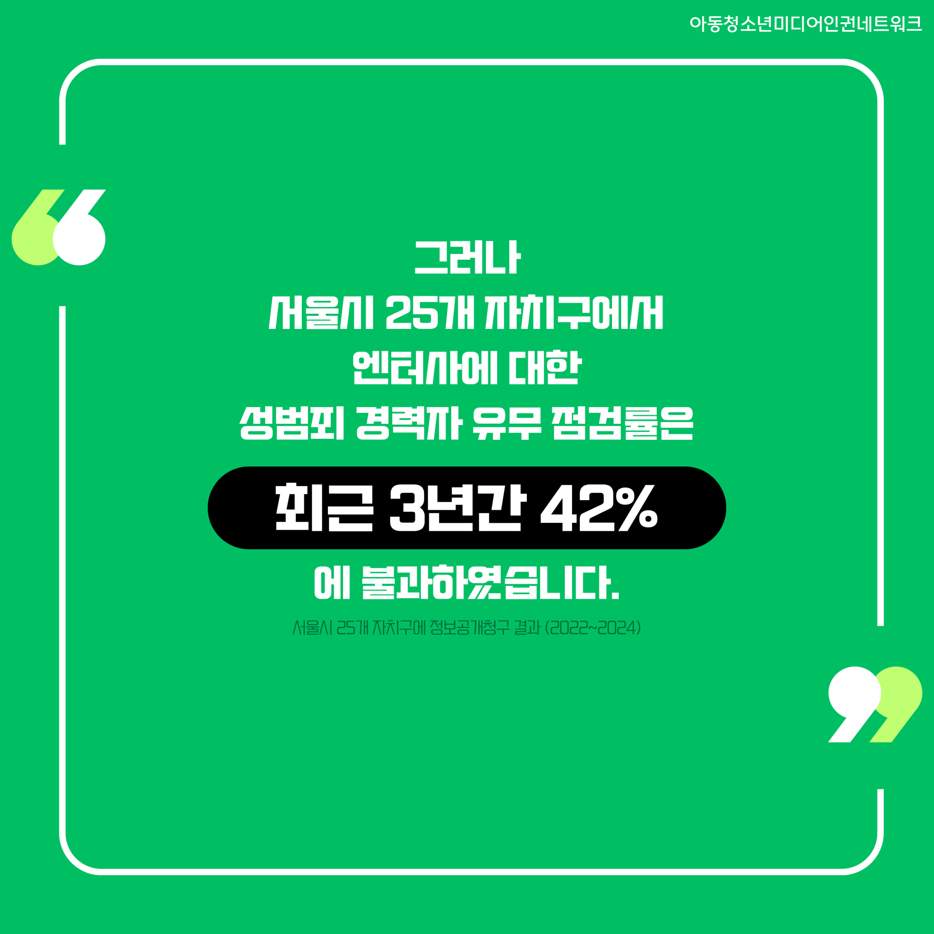 그러나 서울시 25개 자치구에서 엔터사에 대한 성범죄 경력자 유무 점검률은 최근 3년간 42%에 불과하였습니다.