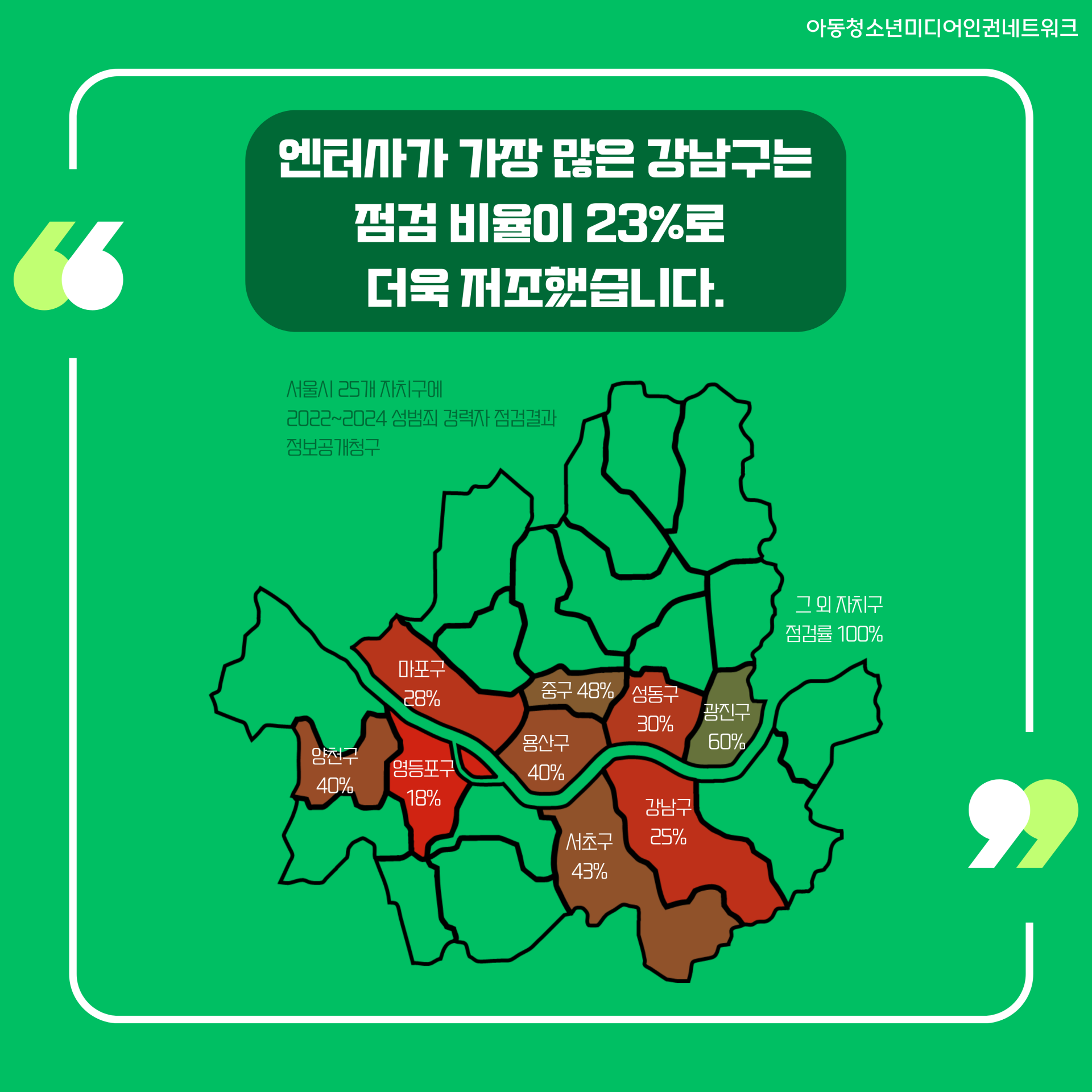엔터사가 가장 많은 강남구는 점검 비율이 23%로 더욱 저조했습니다.